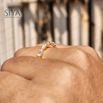 Lab-Grown Diamond Baguette and Round Wedding Band Dainty Stackable Ring Anniversary Gifts